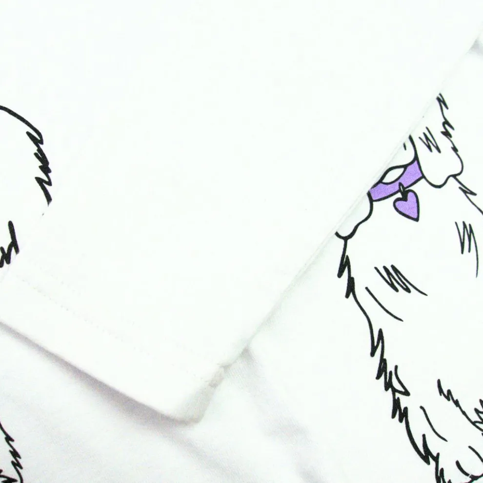 Crafted from 100% cotton for ultimate softness and comfort, this adorable white tee showcases a variety of playful dog breeds, making it perfect for any young pup enthusiast.