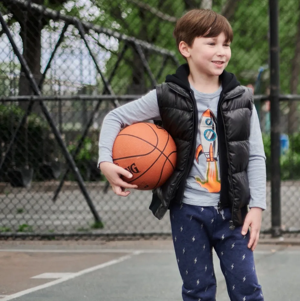 Soar to new heights in the classroom and on the playground with Appaman’s cotton Blast Off Graphic Tee in Light Grey.