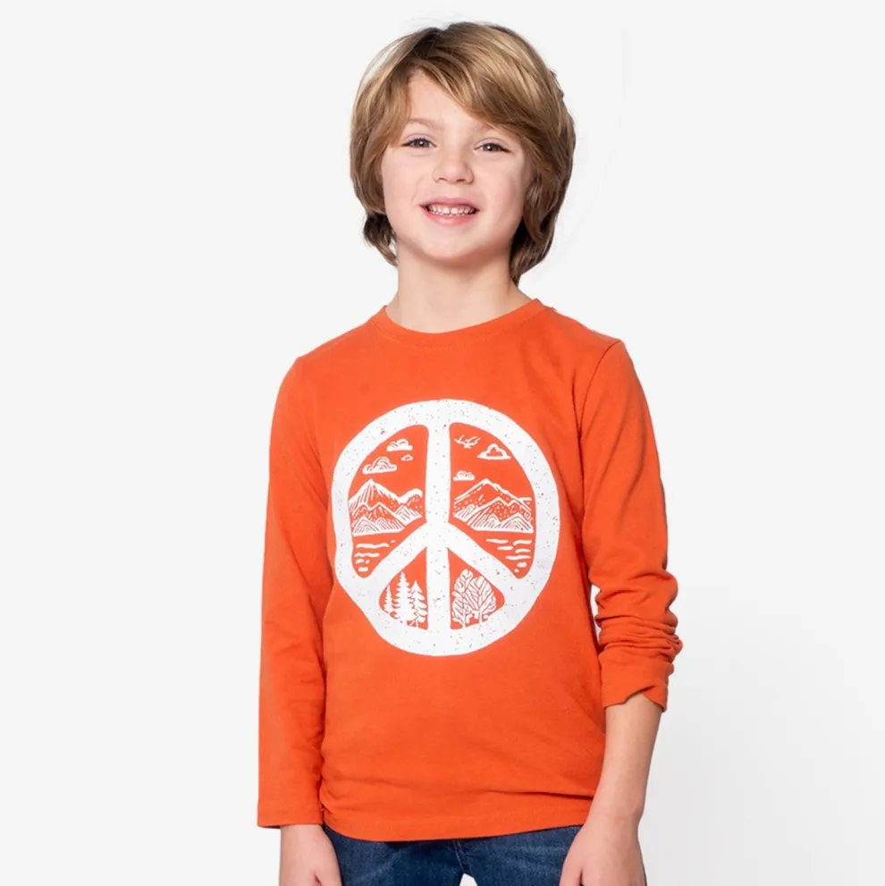 Show peace on Earth with this warm pumpkin-colored graphic tee, made from 100% cotton.