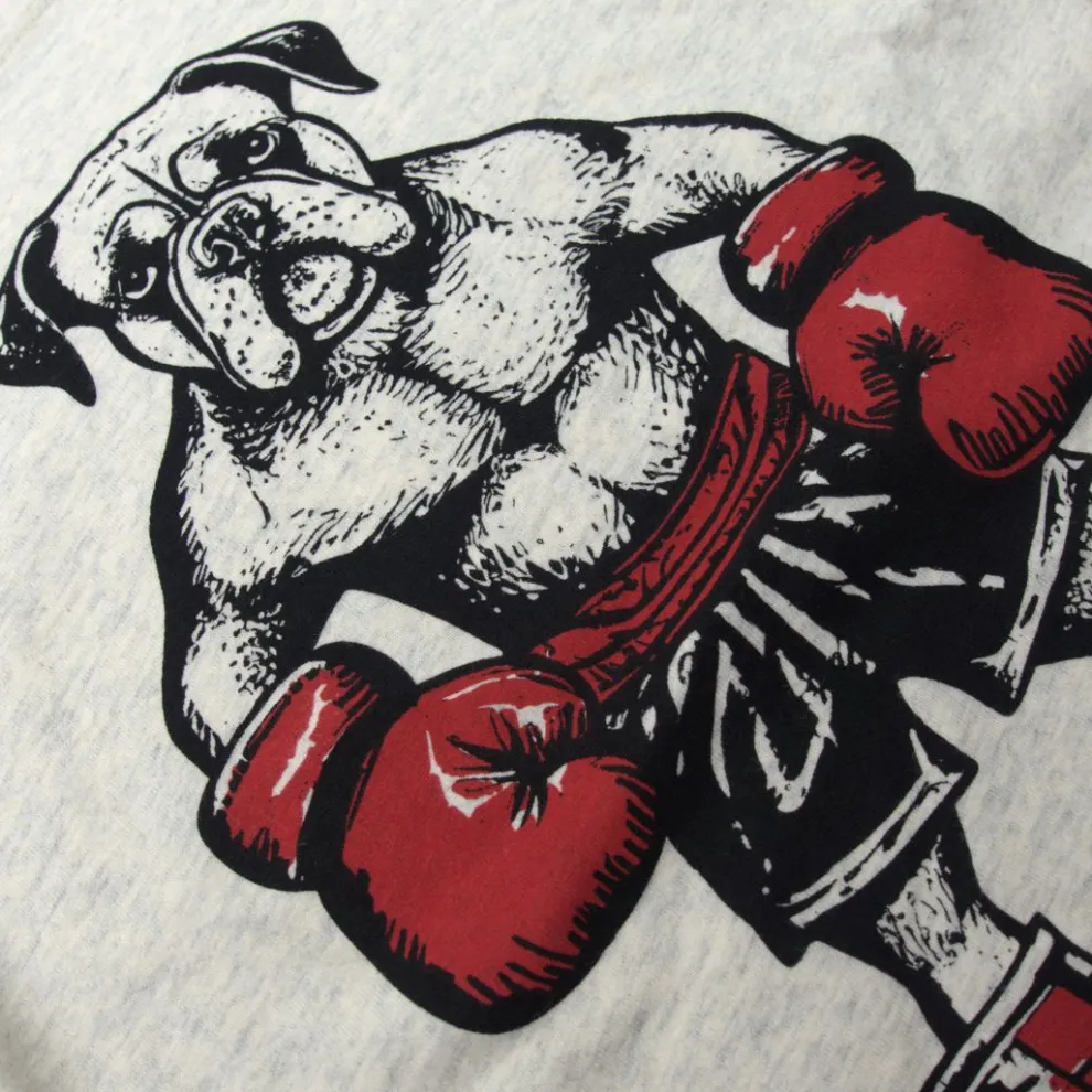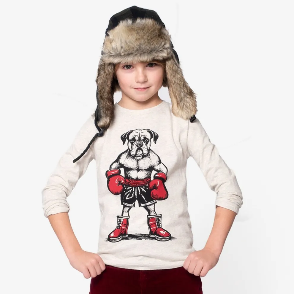 Add a punch of humor and style to his wardrobe with this long-sleeved tee. Crafted from 100% cotton for unbeatable softness, this tee features a playful boxing bulldog sporting red boxing gloves. It’s a knockout choice for your little champion!