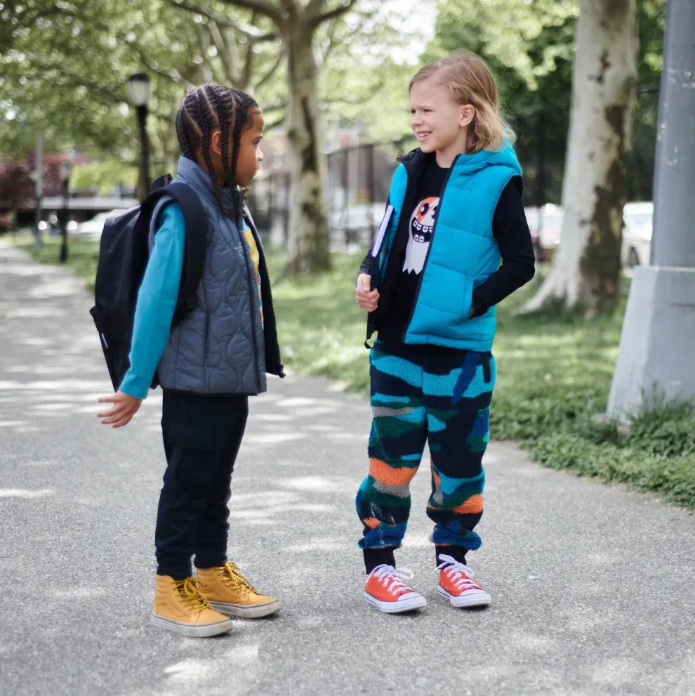 A classic iron color with wave quilting, black interior, and front zip pockets, mix and match this vest to any outfit in your little one’s wardrobe. This vest packs right into its very own pocket!