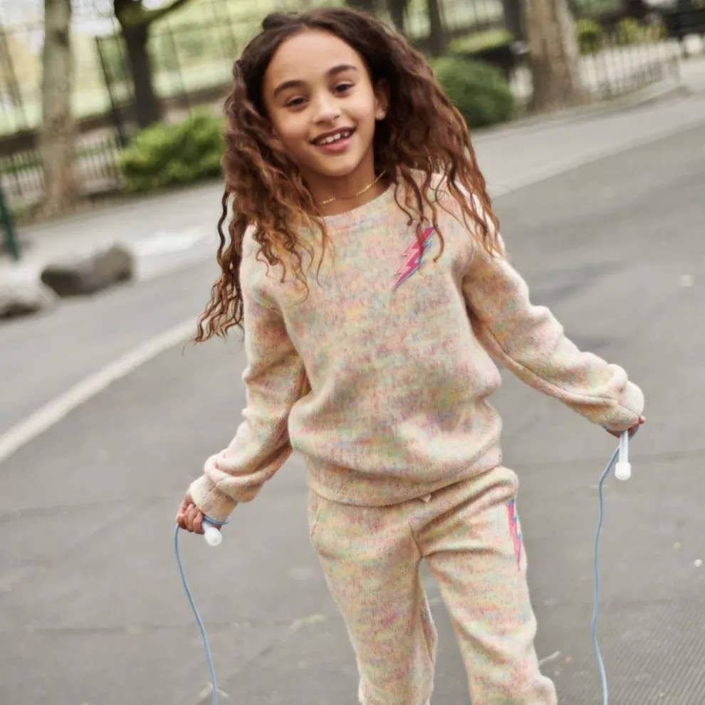 Appaman’s Lightning Bolt Ruby Sweatshirt is the cutest crew neck yet. With soft multi-color fabric featuring a pink and blue embroidered lightning bolt, it’s a “striking” fashion statement. Pair with our matching Stanton Joggers.