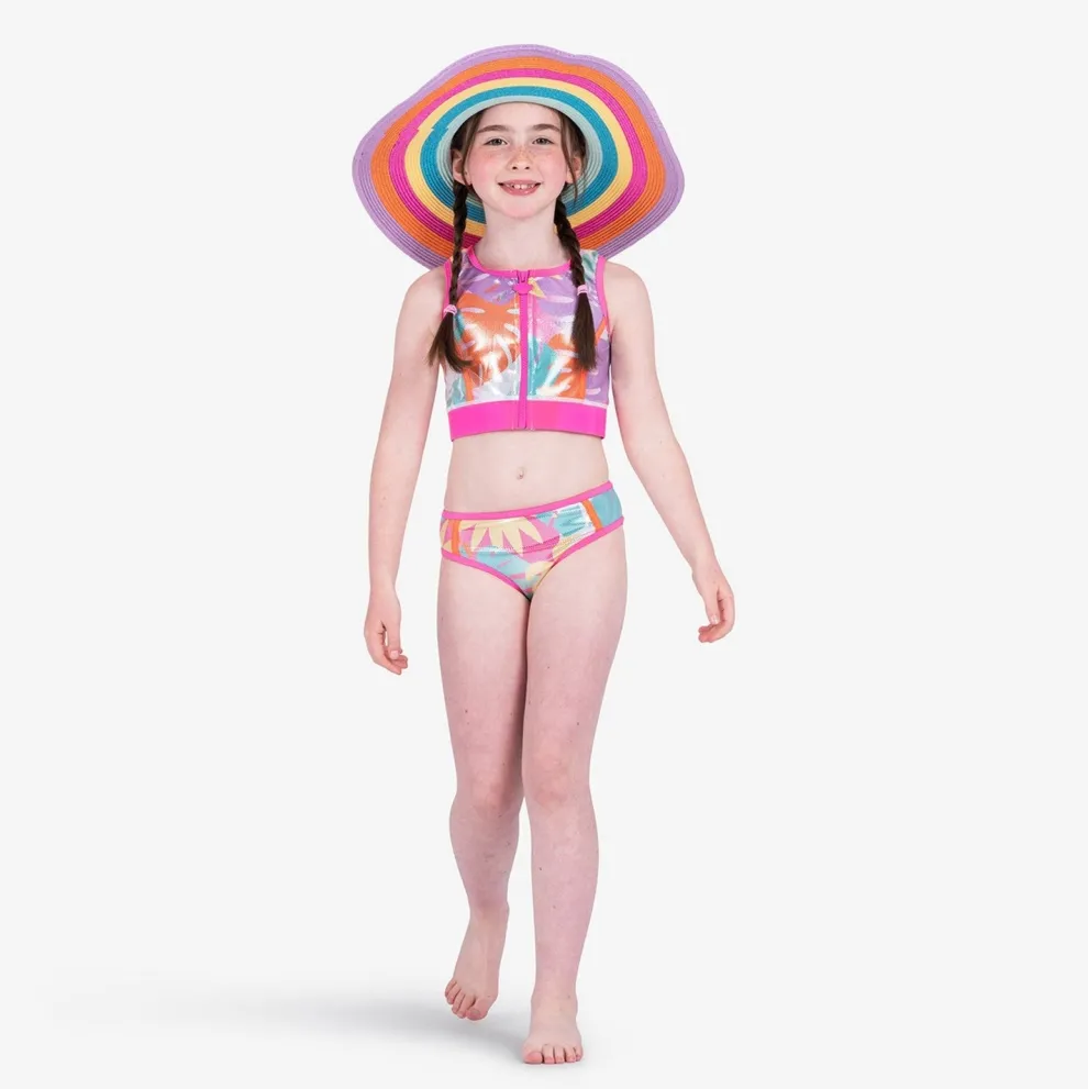 Sway into summer elegance with Appaman’s Palm Beach Sophie Bikini Set – a halter delight with a front zip for a touch of flair! The outer lined pink hue serves as a canvas for playful palm tree designs, bringing a tropical vibe to the beach.