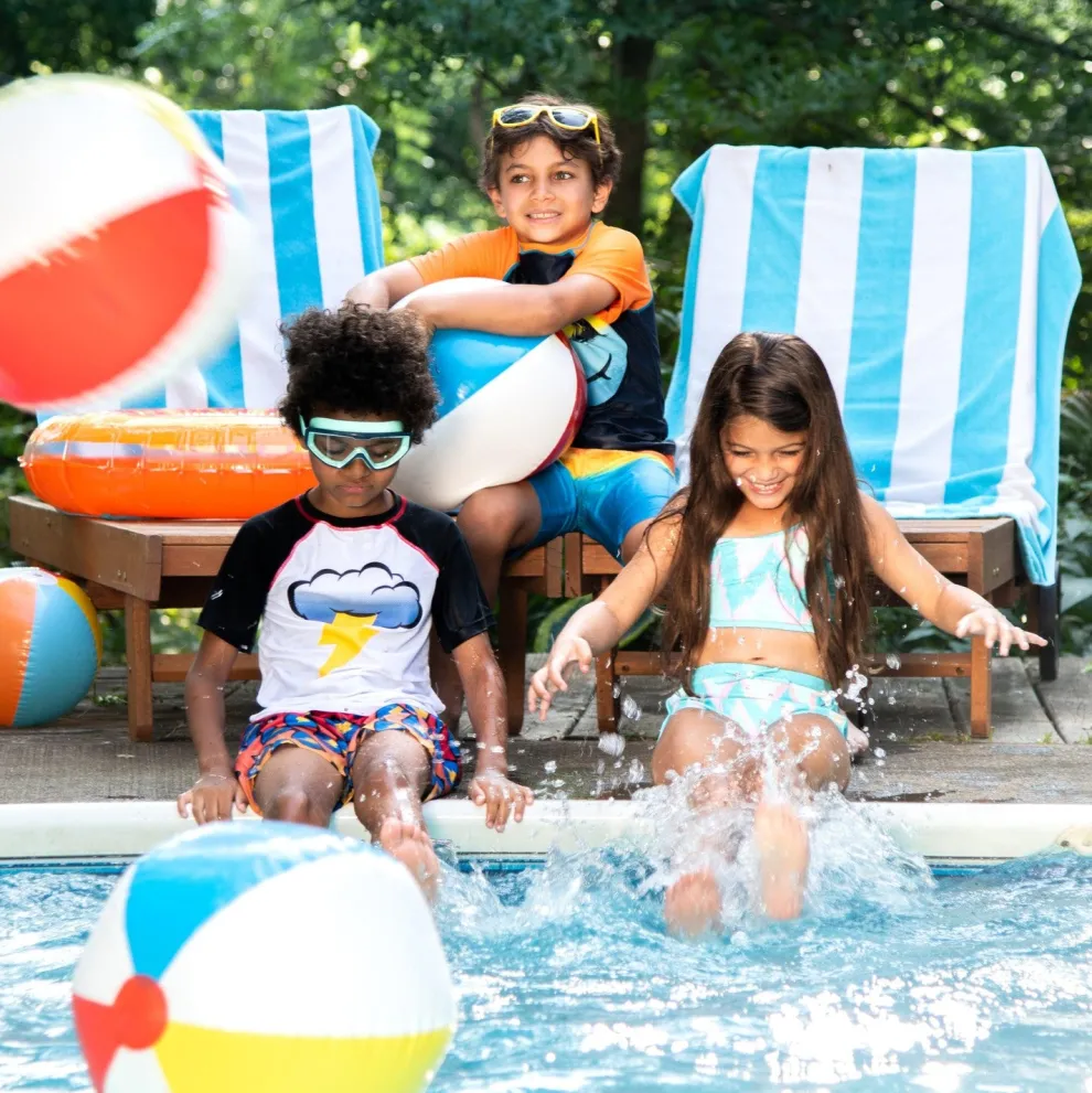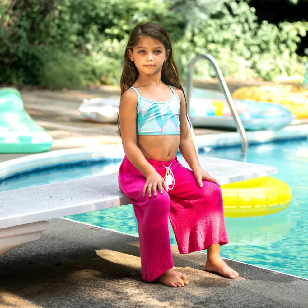Dive into the rhythm of summer with Appaman’s Ikat Stella Swim Short Set – a groovy blend of style and UV50 protection! The halter top, adorned with spaghetti straps, meets its match with hipster shorts featuring a waistband bow tie. The zigzagged, Ikat design features seafoam green, light pink, and coral hues that add an extra splash of personality to your beach ensemble.