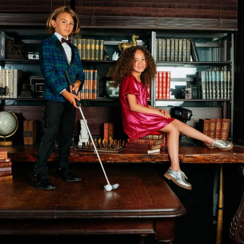 One sophisticated Blackwatch Velvet Plaid tuxedo jacket, please. Make his formal look fun with bright blue and green colors that go along with his fun personality. Pair with Black Tuxedo pants or Black Suit Pants.